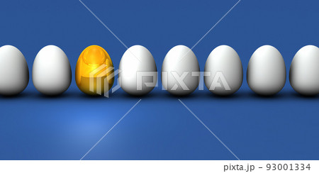 整列した沢山の卵の中で目立つ金の卵。将来性と有望さを表す抽象的なコンセプト