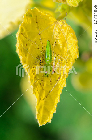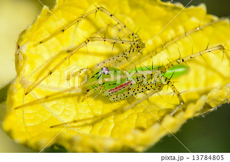Green Lynx Spider is a conspicuous bright-green spider found on