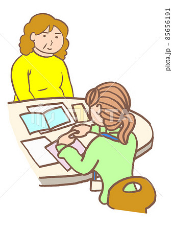 パーソナリティ障害 地域活動支援センターで障害福祉制度の説明を受ける女性のイラスト シンプル