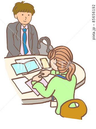 うつ病 障害福祉課で障害福祉制度の説明を受ける女性のイラスト シンプル