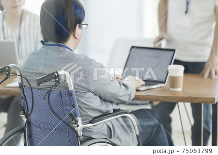 オフィスで働く車椅子の男性