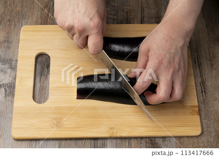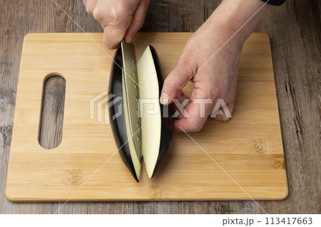 茄子を切る