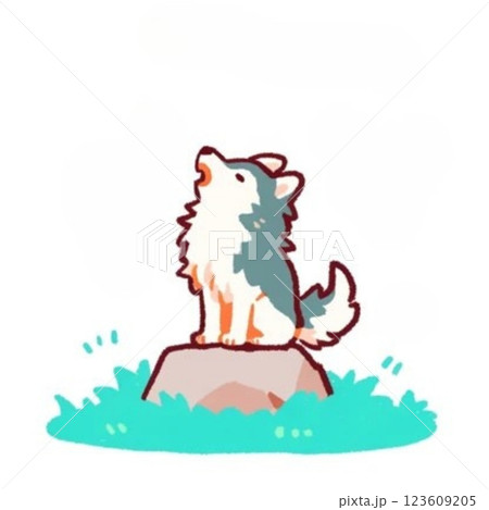 デフォルメ、遠吠えをする狼、イラスト、素材