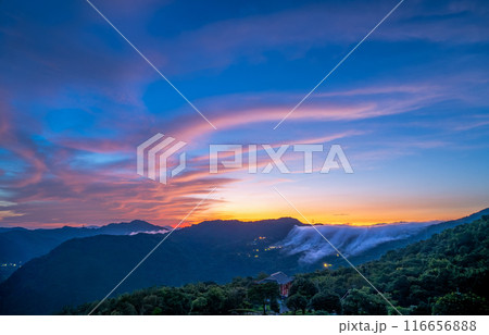 Aerial view landscape mountains view in sunset or sunrise sky background