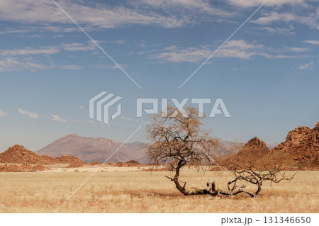 Tree is growing in the extreme climate land. Majestic view of amazing landscapes in African desert