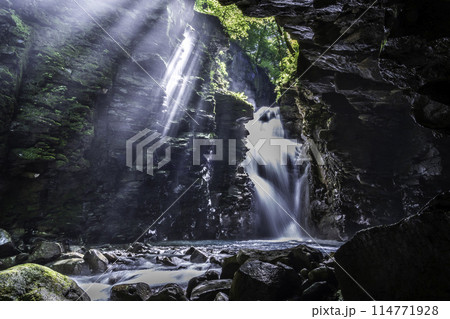 スッカン沢 雄飛の滝の光芒