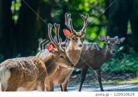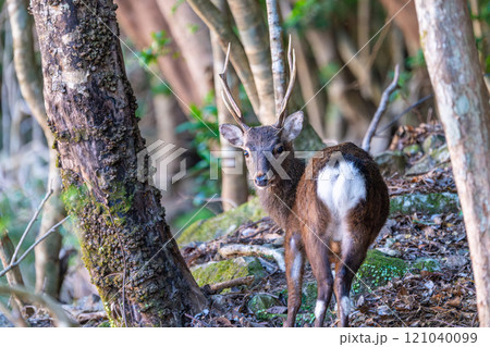 ヤクシカの雄 警戒 世界自然遺産屋久島(春