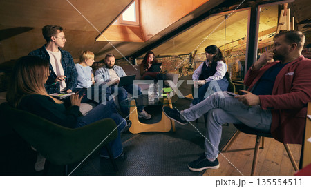 Top view of diverse business people brainstorm marketing idea. Directorate.