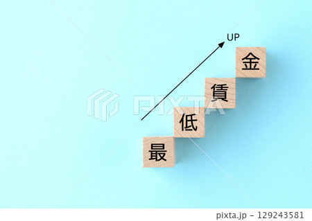 最低賃金が上がる状況をブロックで表現したイメージ画像