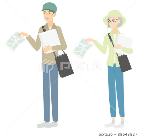 ポスティングのアルバイトをするシニアの男女