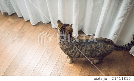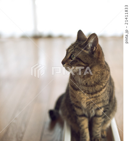 窓辺でくつろぐ日本猫 陽だまりでこうばこを組むとらねこさん