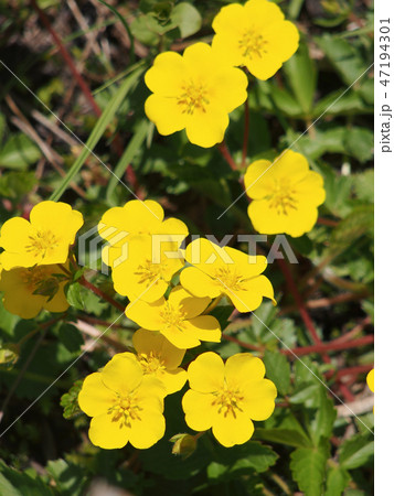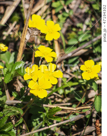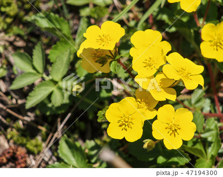 自然 植物 キジムシロ、バラ科の多年草。葉が地面に広がる様子を雉が休むムシロに例えた名前