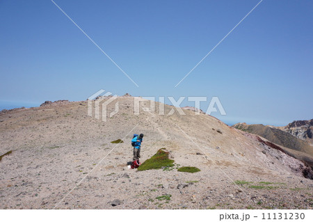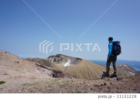 日本百名山 登山道より 雌阿寒岳山頂 ポンマチネシリ火口 青沼を望む