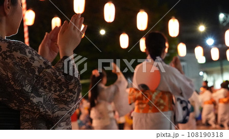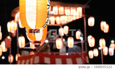 夏祭りの提灯と盆踊りの踊り櫓の太鼓
