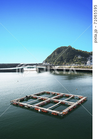 養殖いかだのある魚港の風景
