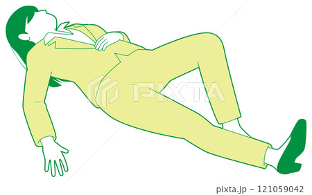 うつぶせで寝ている女性のイラスト【転倒・けが・気絶・病気・疲れ・息切れ・伏せる・めまい・意識不明】