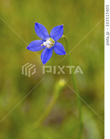 スッと直立した茎の頂に一輪花を咲かせるヒナキキョウソウ