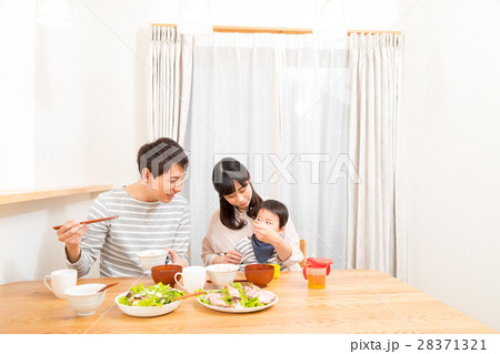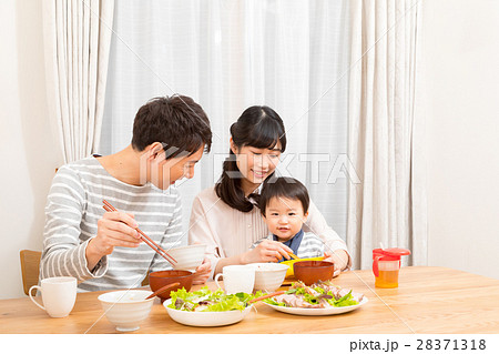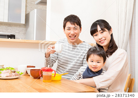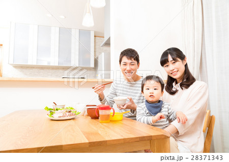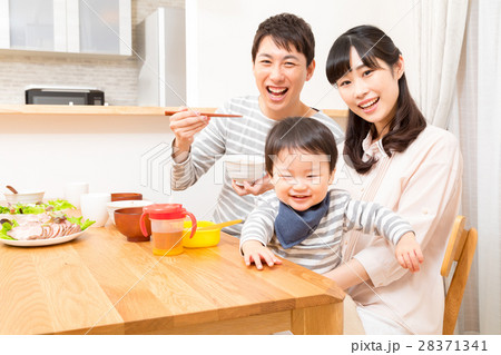 家族 マイホーム 食事シーン パパ ママ 赤ちゃん 1歳児