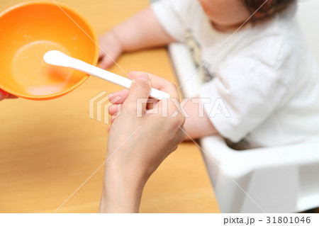 家族 マイホーム 食事シーン ママ 赤ちゃん 1歳児