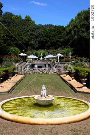 神戸市の須磨離宮公園にある庭園のバラと噴水