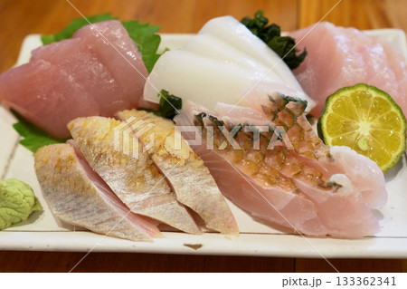 沖縄の居酒屋:イラブチャー、マグロなど地魚の新鮮な刺身盛り合わせ