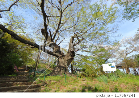 新田金山城跡 桜が咲く登山道入口(群馬県 太田市)