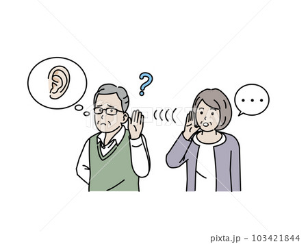 シンプル イラスト 耳が遠く話が聞き取りにくいシニアの男女 人物