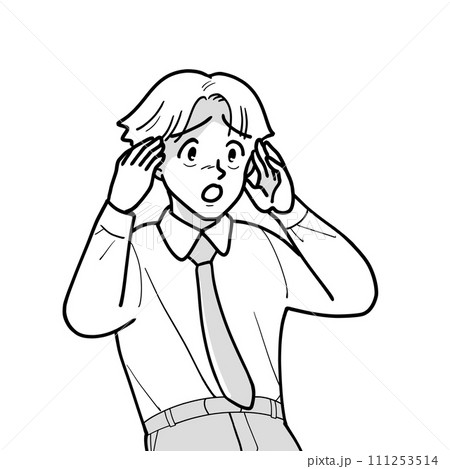 耳鳴りに悩むシニア男性 上半身イラスト