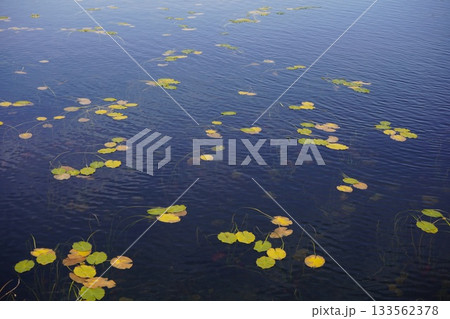 秋の雨竜沼湿原に広がるコウホネ
