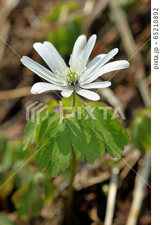 アズマイチゲの白く清楚な花開く 福島県只見町