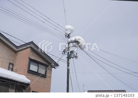 雪の積もった電信柱(雪)11