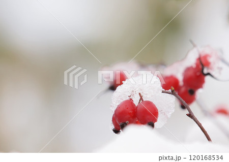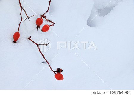 雪とバラの実の画像素材(写真・イラスト) 1ページ目