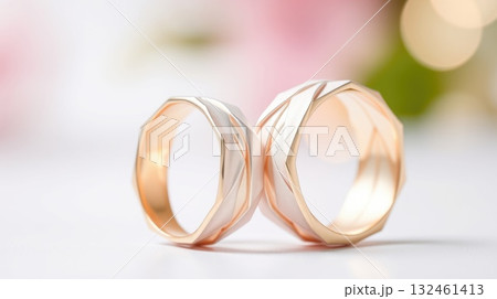 Two rings shown with reflective surfaces and soft shadows. Highlighting detail and refinement.