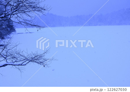 栃木県 日光 湯ノ湖畔 冬景色の風景