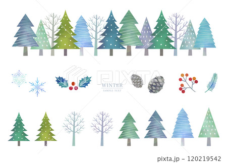 冬の針葉樹の並木 (水彩風ベクター)