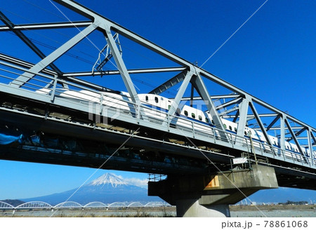 富士山と富士川橋梁を通過する東海道新幹線N700系