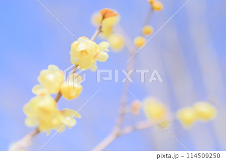 冬の晴れた日に咲く素心蝋梅(ソシンロウバイ)の花