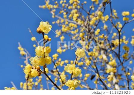 ≪花≫ 青空に咲く満開の黄色いロウバイ