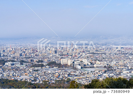 高良大社から久留米市・鳥栖市方面を撮影(積雪の風景)