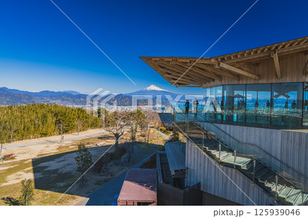 静岡市にある冬の晴れた日の日本平夢テラス展望回廊から見た風景(静岡県)