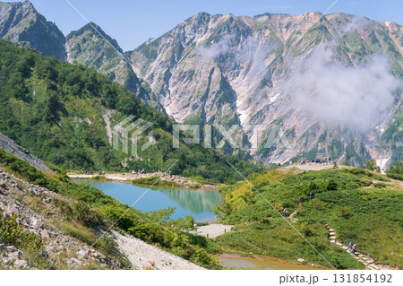 登山者がいる八方池と迫力ある山【八方尾根】長野県白馬村・9月