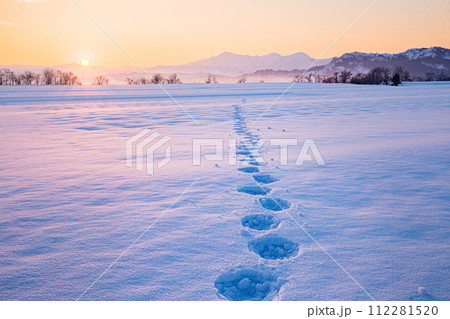 新潟県長岡市 美しい新雪に続くウサギの足跡