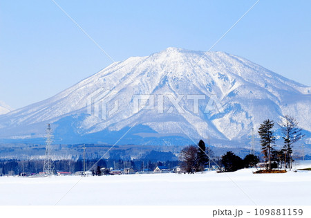新潟県小千谷市 雪の越後駒ヶ岳とハサ木
