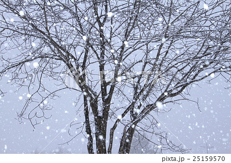 一本の木とボタン雪の雪降りの風景