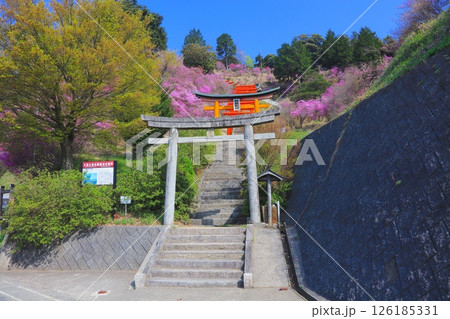 京都府宮津市獅子崎稲荷神社とみつばつつじを撮影したもの