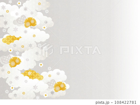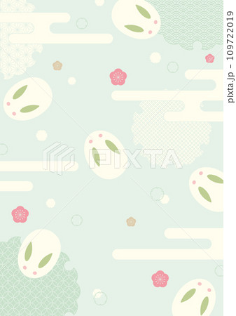 背景素材:日本の伝統的な柄を集めた雪うさぎと雪輪と梅の風景