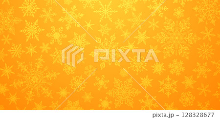 Christmas illustration with various snowflakes on yellow.