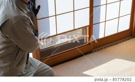 日本家屋の雪見障子と畳│結露する窓と雪景色 和風・和室イメージ