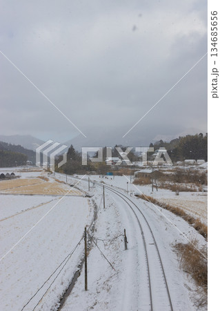 雪が積もって霧がかかった新潟の風景 05