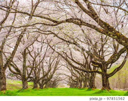 岩手県岩手郡雫石町根堀 さくらの名所雫石川園地のソメイヨシノ桜並木のトンネル